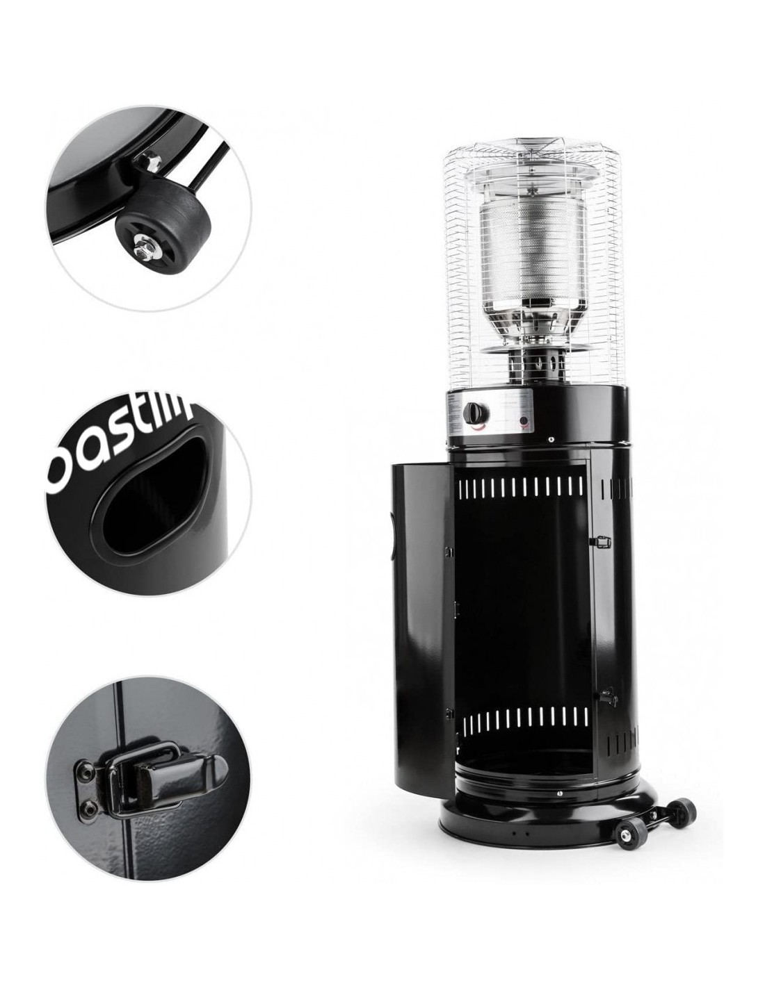 PROMETEO BLACK 11K, Estufa gas para exterior 11 KW, color negro, con ruedas de transporte