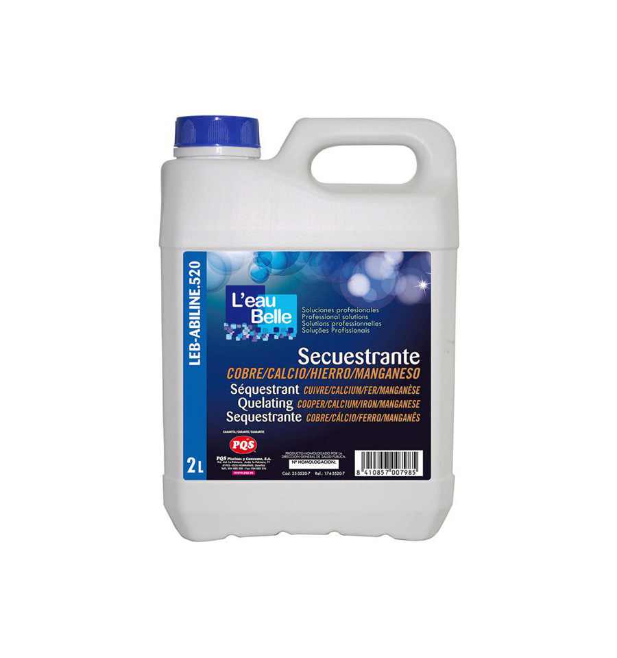 Secuestrante de cobre, calcio, hierro y manganeso. Evitará que se produzcan deposiciones e incrustaciones de estos metales enlos paramentos y elementos de la piscina en contacto con el agua. Elimina las contaminaciones metálicas que aparecen en el agua de aporte y que interfieren en la acción de los desinfectantes y colorean la piscina.
