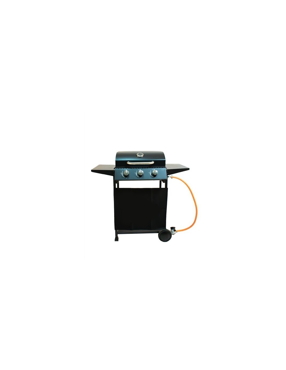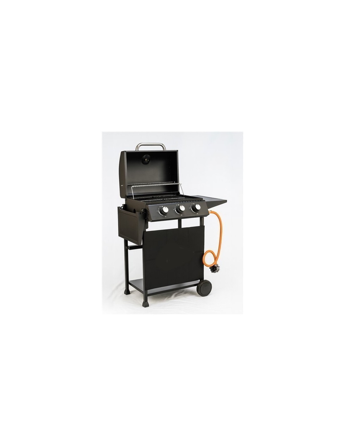 Barbacoa de gas equipada con 3 quemadores de acero aluminizado de alto rendimiento y encendido piezoeléctrico rápido. Ofrece una distribución homogénea del calor en la parrilla de 52 × 35 cm y un control preciso de la temperatura para cocinar carnes, pescados y verduras al punto ideal.