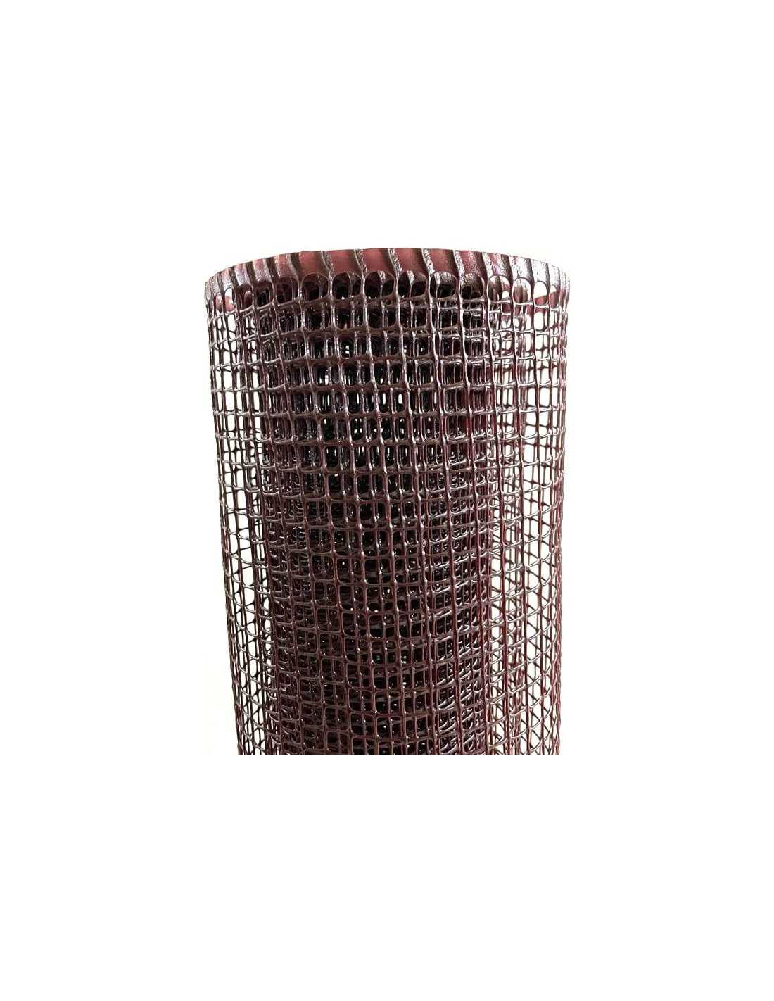 Malla de jardinería de plástico o cerramiento de color marrón fabricada en polietileno con cuadrados de diferentes medidas.