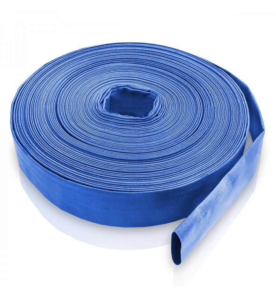 Manguera Plana Reforzada de PVC en color azul, con uso especialmente indicado para la agricultura y construcción.