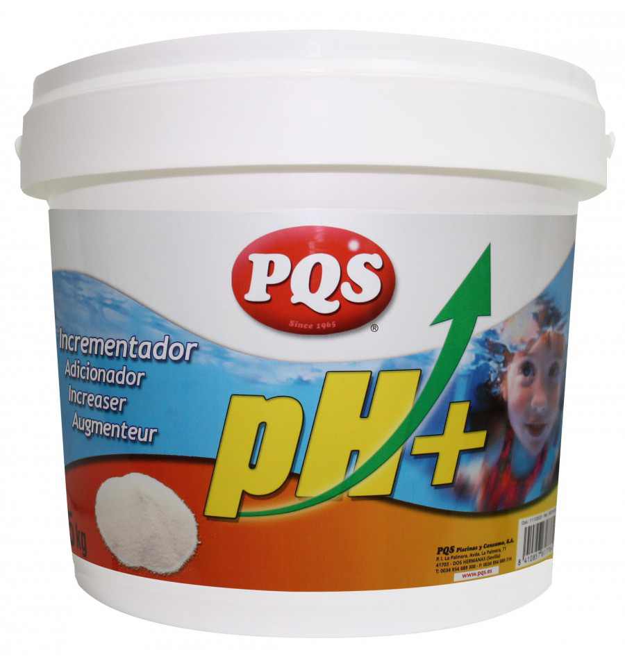 Dosis: Para incrementar una décima de pH, añadir 5 g de pH+ por cada m3 de agua, disuelto previamente en cantidad suficiente de agua, sobre las boquillas de impulsión y con el equipo depurador en marcha. Las dosis son siempre orientativas, dependen de las características del agua.