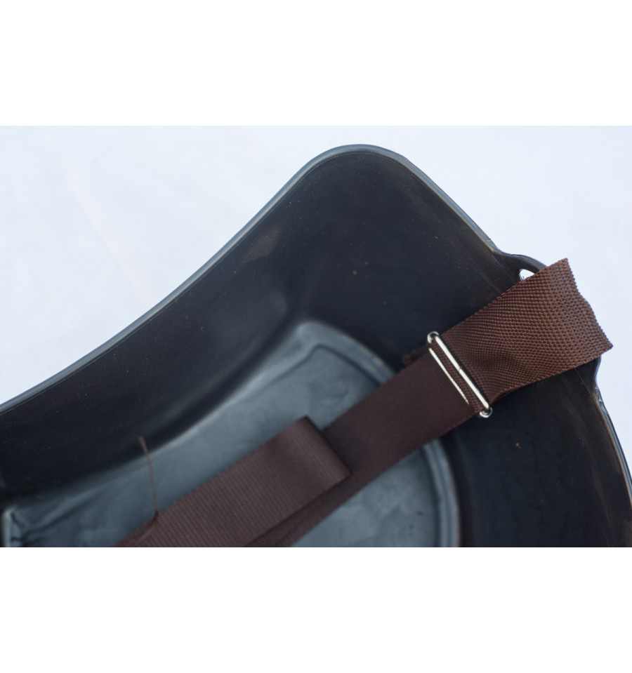 É feito de polietileno, preto, inclui cintas de fixação e anéis.