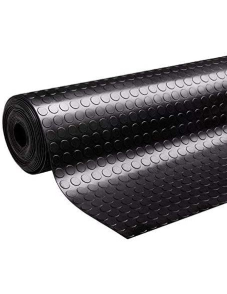 Pavimento de borracha de círculos em largura de 1,20m e 15m de comprimento, também chamado de piso pirelli, que tem um padrão de botão na parte superior que evita escorregões, pois oferece muita aderência e é muito antiderrapante