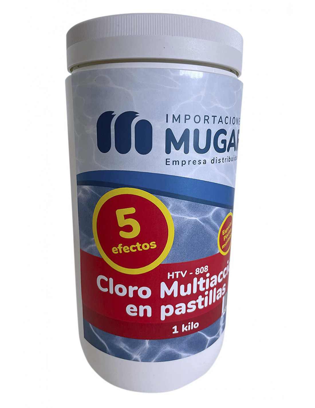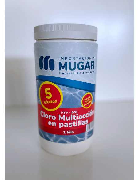 MUGAR- Produtos de Limpeza e Manutenção de Piscinas.- Comprimidos de Cloro 5 Efeitos- Recipiente 1kg