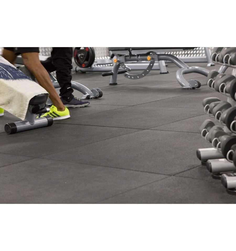 Telha energética para crossfit e academias para área de peso livre. Pavimento emborrachado de 1x1 m e 1cms de espessura na cor preta.