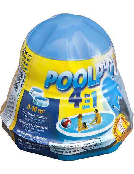O limpador de piscina Poolpo 250 g é um dispensador flutuante de uso único desenvolvido pela Gre para o tratamento completo de água em piscinas acima do solo.