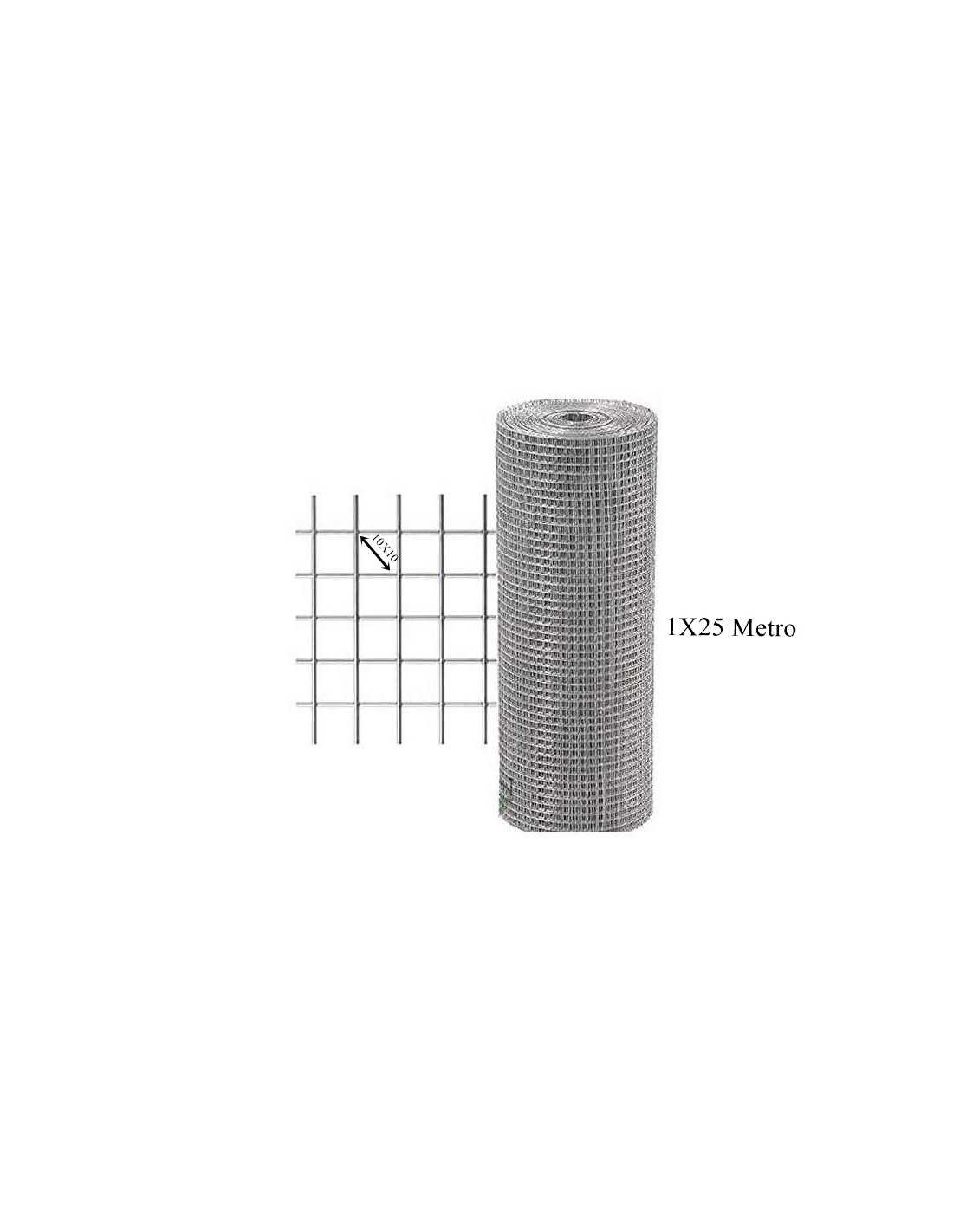 Malha galvanizada eletrossoldada 10x10 mm leve, 0,8 mm de diâmetro do fio. Rolo de 25 m