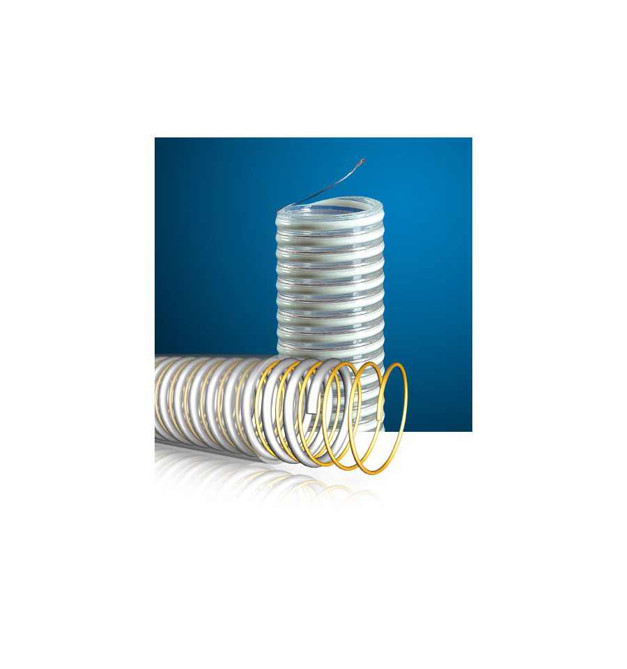 - Tubo com reforço espiral metálico interno que lhe confere uma grande consistência, mas também flexível para máximas possibilidades mecânicas