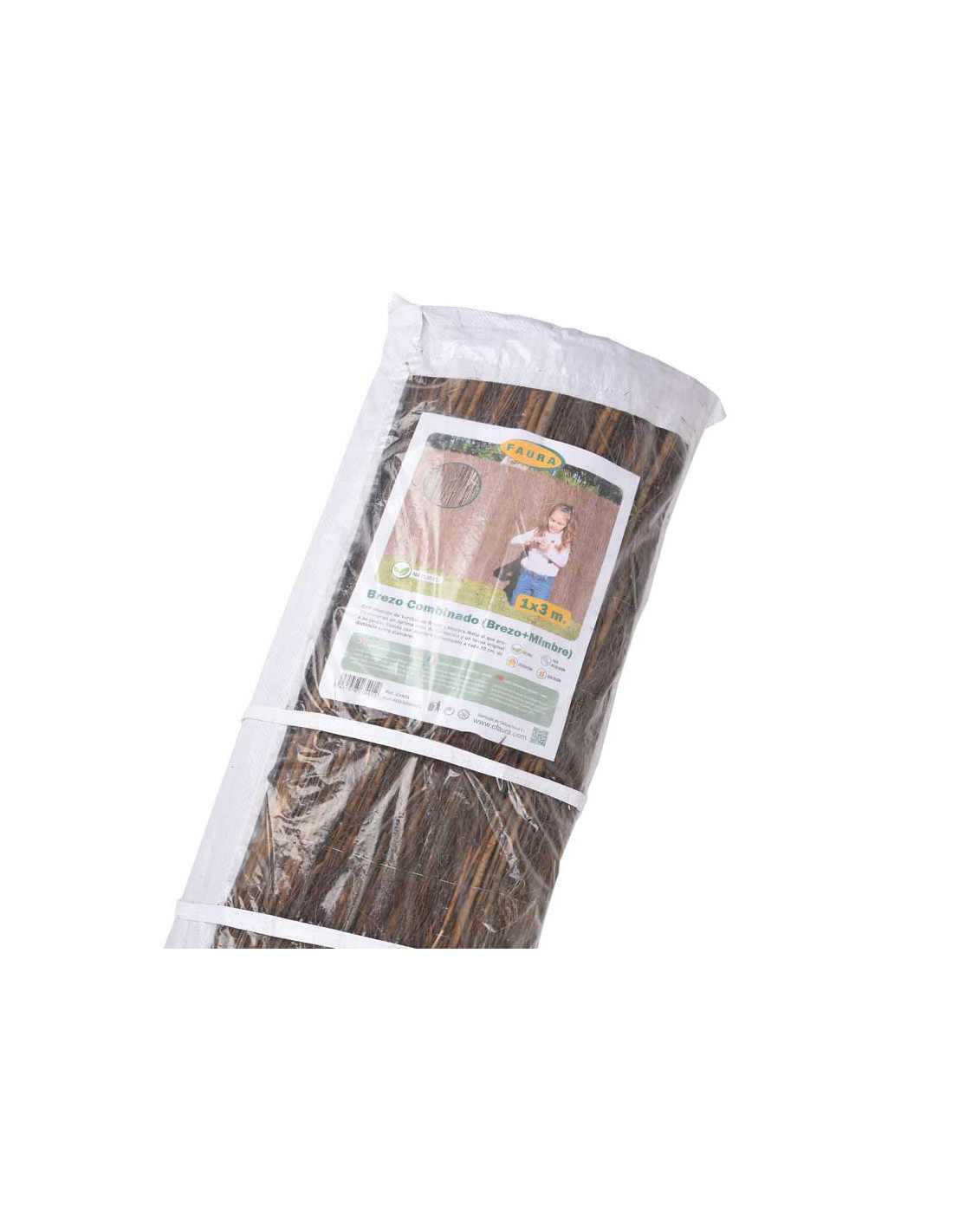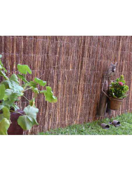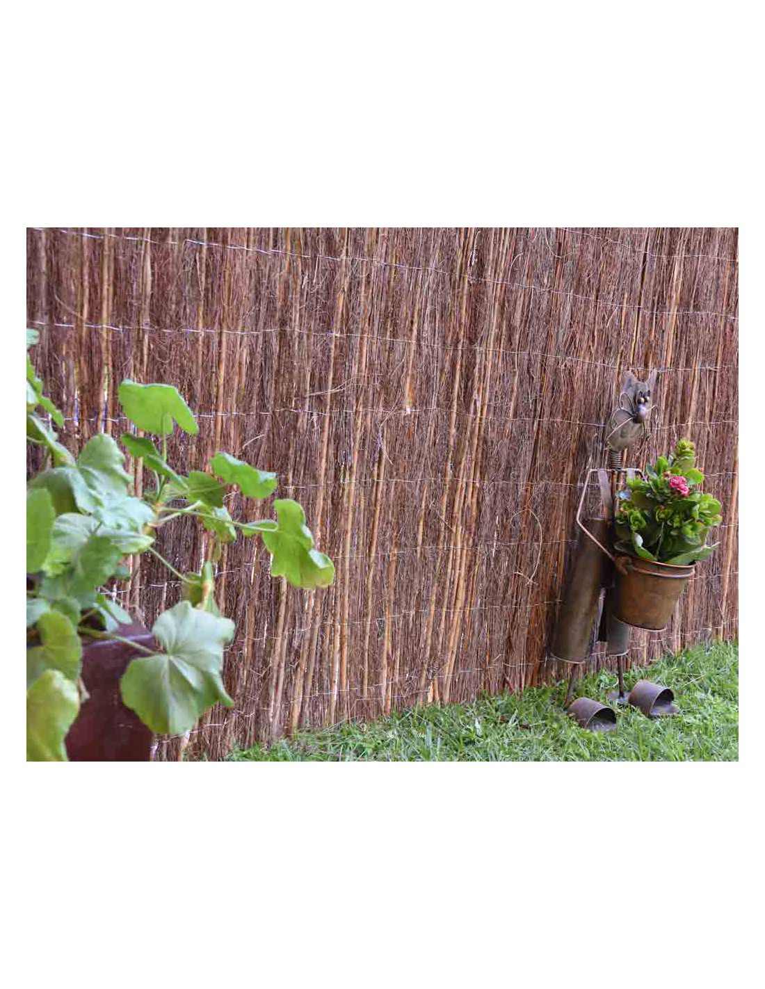Combinação de hastes de urze e vime natural que proporcionam um nível ideal de ocultação e um toque original ao seu jardim. Costurado com arame galvanizado a cada 10 cm de distância entre os fios.