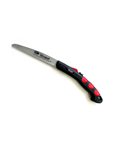 Segurança e ConfortoEste tipo de serra é totalmente dobrável sobre si mesma, permitindo que a lâmina fique protegida dentro do cabo, facilitando seu transporte sem se preocupar com cortes acidentais. | Sistema de Travamento AutomáticoO sistema de travamento automático na posição de corte permite que a serra seja estabilizada para que não feche durante o uso. | Dentes polidos duráveisA lâmina produz um corte suave devido ao seu acabamento cuidadoso. Além disso, em condições normais de uso, não precisará ser afiado novamente em nenhum momento. |