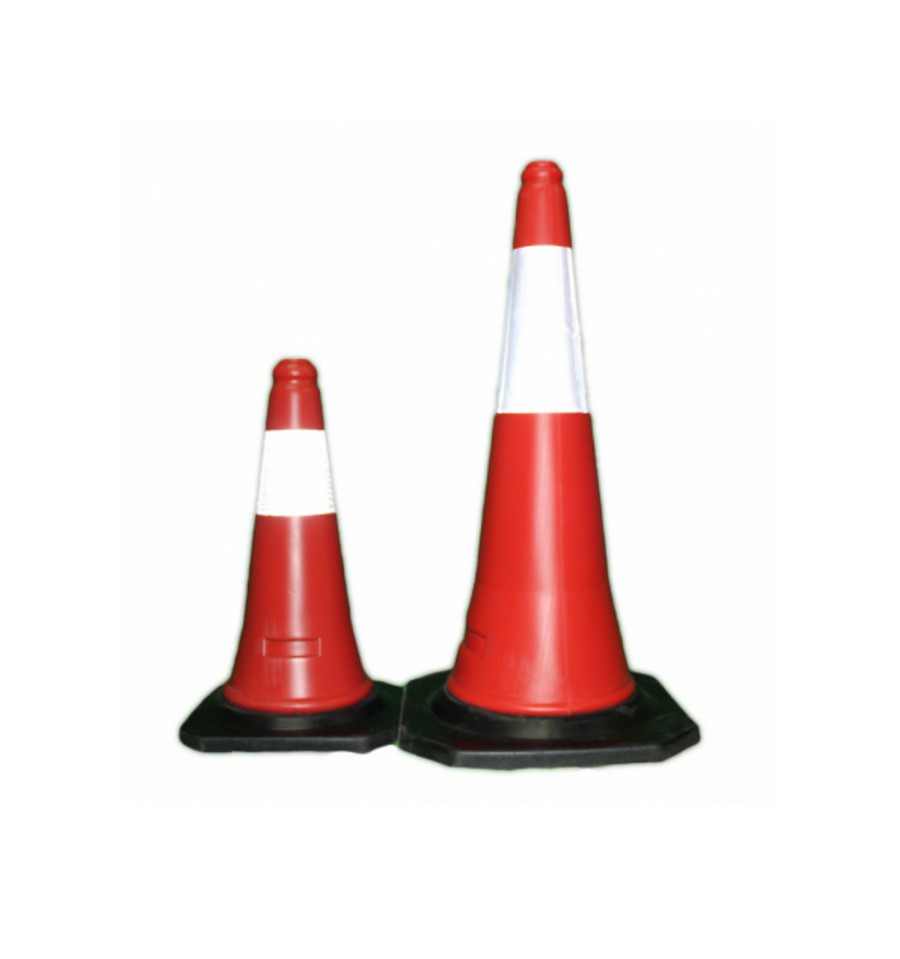 Cone refletivo para sinalização trabalha com 700 mm de altura.